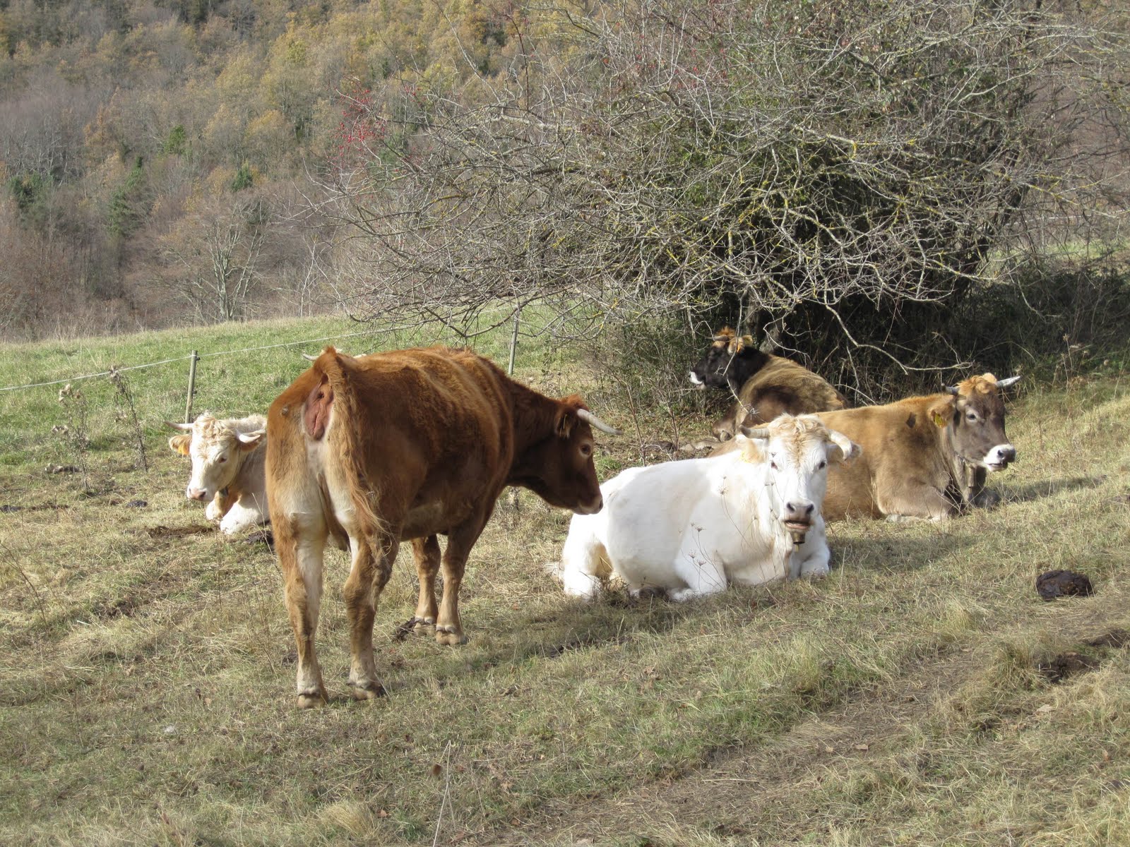 Ens acompanya un dia d’ aquells tant transparents, cel blau, pocs núvols i gens d’aire. Al fons el Pirineu tot nevat, fem fotos al Canigó. Serpentejant arribem al coll d’en Sivilla i a partir d’ aquí anem baixant fins arribar als prats on pasturen vaques i una mica mes enllà enmig de prats el Santuari del Remei.